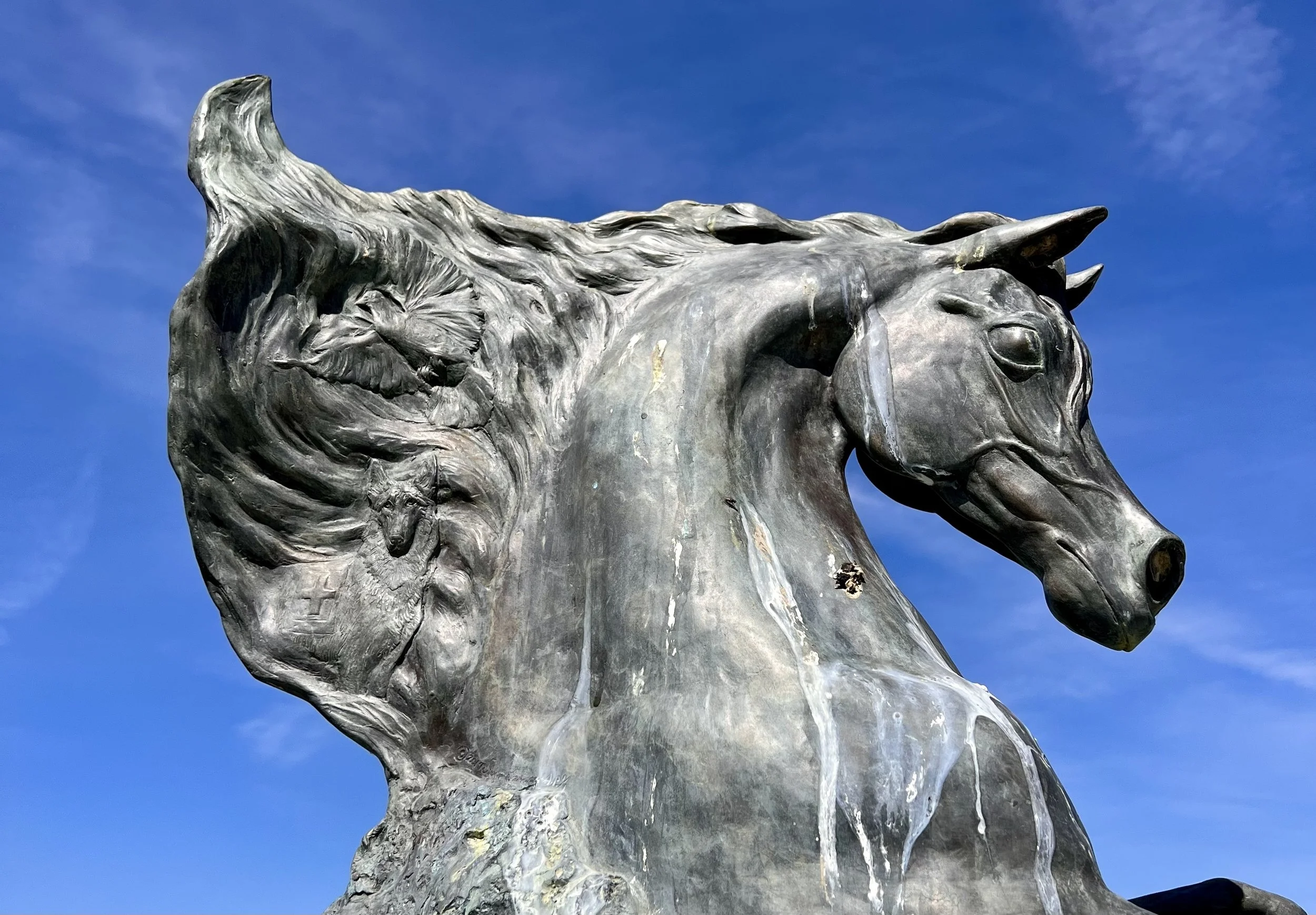 The statue of the horse is beautifully done, and when you look closely, you can see engravings of a bird and a dog in its mane. It’s a small detail, but it says a lot about how many lives—human and animal—were caught up in it all.