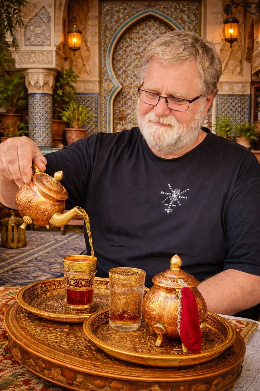 This week’s shaping up a bit differently… let’s call it a detox, no driving for Digby, no rich foods just simple fare, and—brace yourselves—no casual beers. Alcohol’s only served in licensed venues, and our riad isn’t one of them. So, it’s mint tea and fresh juices for now!